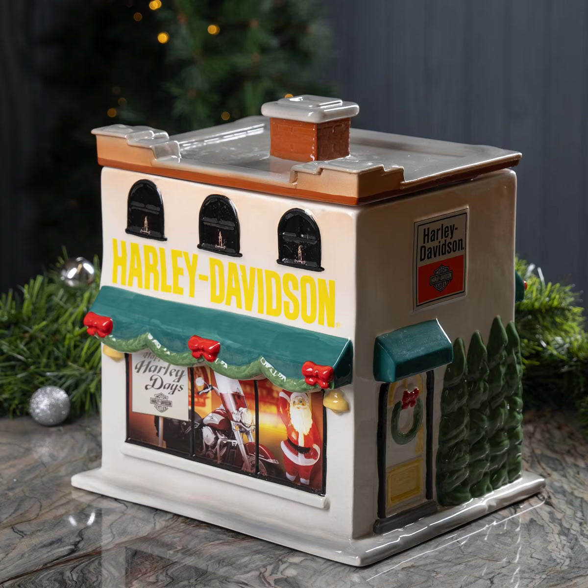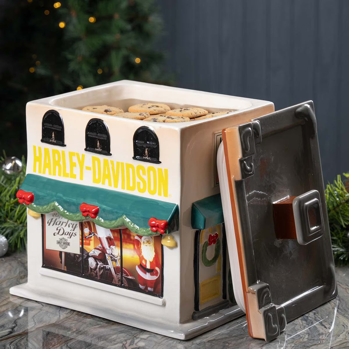 Boîte à biscuits personnalisée HD Dealership de 1,8 L (2 pintes), sculptée et peinte à la main. Couvercle avec joint en silicone pour une conservation optimale. Lavage à la main uniquement.