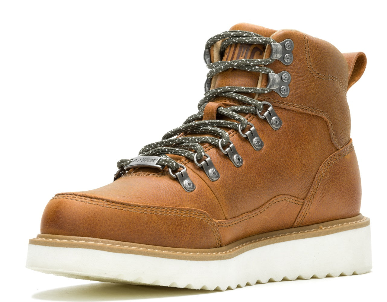 Bottes moto décontractées Salter Harley-Davidson® pour homme, bleu marine D93880, marron clair D93881. Prenez les choses en main avec les bottes moto décontractées Salter. Fabriquées en cuir pleine fleur robuste et dotées d'une doublure en mesh respirant sur toute la longueur, elles sont faites pour ceux qui repoussent les limites. Leur construction en ciment assure une base solide et durable, idéale pour dominer la rue et afficher une allure audacieuse où que vous alliez. Fabriquées en cuir pleine fleur légèrement texturé pour un look unique, elles offrent un confort optimal quelle que soit l'activité. Le bout arrondi est strié et le lacet inférieur arbore un badge Harley-Davidson® en métal. Cinq paires d'œillets métalliques D-Ring et deux paires de crochets rapides assurent un laçage rapide. Les lacets sont de couleur assortie et une paire supplémentaire est incluse. Le logo H-DMC® est gravé sur le dessus de la languette rembourrée et sur la face extérieure du contrefort. Le revers est également rembourré pour plus de confort. Une boucle d'enfilage facilite l'enfilage. La semelle extérieure, d'un blanc éclatant et d'une qualité exceptionnelle, est fabriquée en caoutchouc résistant, pour une foulée agréable et confortable. Les semelles intermédiaires, orientées vers l'extérieur, sont ornées d'une magnifique teinte beige coordonnée. La semelle, la semelle intérieure et la tige sont soudées par collage, une méthode traditionnelle et durable qui assure une foulée souple et confortable. Un logo Harley-Davidson® est apposé sur le cou-de-pied. Portées pour toutes vos activités, que ce soit en ville, au travail, pour les loisirs ou à vélo, ces bottes vous accompagneront avec style et confort. Hauteur de tige : 14 cm, hauteur de talon : 3,8 cm. Tailles : M 7-12, 13. Référence fabricant : bleu marine D93880, marron clair D93881. Wolverine® et Harley-Davidson® ont une longue tradition de chaussures originales et fonctionnelles pour nos passionnés de moto. Fidèles. Robustes. Intrépides. Nos chaussures incarnent l'esprit de la route, ainsi que les hommes et les femmes qui portent fièrement la marque. Avec une présence mondiale croissante, Harley-Davidson® Footwear propose des chaussures de moto fonctionnelles et tendance à tous ceux qui recherchent la qualité et apprécient la marque Harley-Davidson®. Performance ou style, nous avons ce qu'il vous faut. Produit Harley-Davidson® sous licence officielle par Wolverine®.