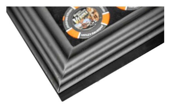Avez-vous accumulé des jetons de poker de casino ou des jetons de concessionnaire Harley-Davidson® lors de vos voyages à moto ? Si oui, vous êtes peut-être un collectionneur. La collection de jetons de casino est devenue très populaire depuis 1988, année de la création du Club des collectionneurs de jetons de casino et de jeux. Pour de nombreux motards Harley-Davidson®, ces jetons ne sont pas seulement des œuvres d'art, mais aussi un moyen de commémorer leurs voyages. Les collectionneurs accordent une grande importance à leur esthétique, notamment aux designs et aux combinaisons de couleurs originales. Ceux qui collectionnent les jetons savent qu'ils ont à la fois une valeur dynamique et une valeur de collection, surtout lorsqu'ils sont progressivement abandonnés au profit de nouveaux modèles. Le cadre de collection de jetons de poker Harley-Davidson® 6927 est idéal pour exposer ces trésors. Ce cadre peut être accroché au mur ou sur un comptoir. Un insert floqué noir maintient les jetons solidement en place. Fabriqué en bois noirci avec une vitre en acrylique, il peut contenir 26 de vos jetons préférés. Si vous collectionnez des jetons de poker et pratiquez la moto, ce cadre vous permettra de les exposer tous les deux. Dimensions : 34,3 cm x 29,2 cm. Cadre de collection de jetons de poker Harley-Davidson® 6927. Cadre uniquement. Jetons de poker vendus séparément. Fabriqué aux États-Unis. Sous licence Harley-Davidson®, fabriqué par Dart World®. 6927.