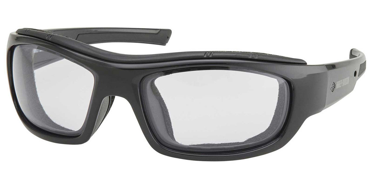 Lunettes de soleil de moto Harley-Davidson® Soldier Clear pour homme, monture noire et verres transparents, modèle HZ0007-01A. Lunettes performantes et élégantes, idéales pour vos balades estivales. Monture noire avec verres transparents à luminosité variable et traitement antibuée. Face et branches moulées par injection (sans embouts auriculaires). Homologuées ANSI pour une utilisation à moto. Joint amovible et bandeau ajustable par pression. Base 8. Convient aux tours de tête de taille moyenne à grande. Dimensions : 66-17-125. Joint de rechange vendu séparément. Homologué ANSI pour une utilisation à vélo Cadre noir lentilles à réglage de la lumière claire Technologie anti-buée Logo HD à chaque temple Référence fabricant : HZ0007-01A