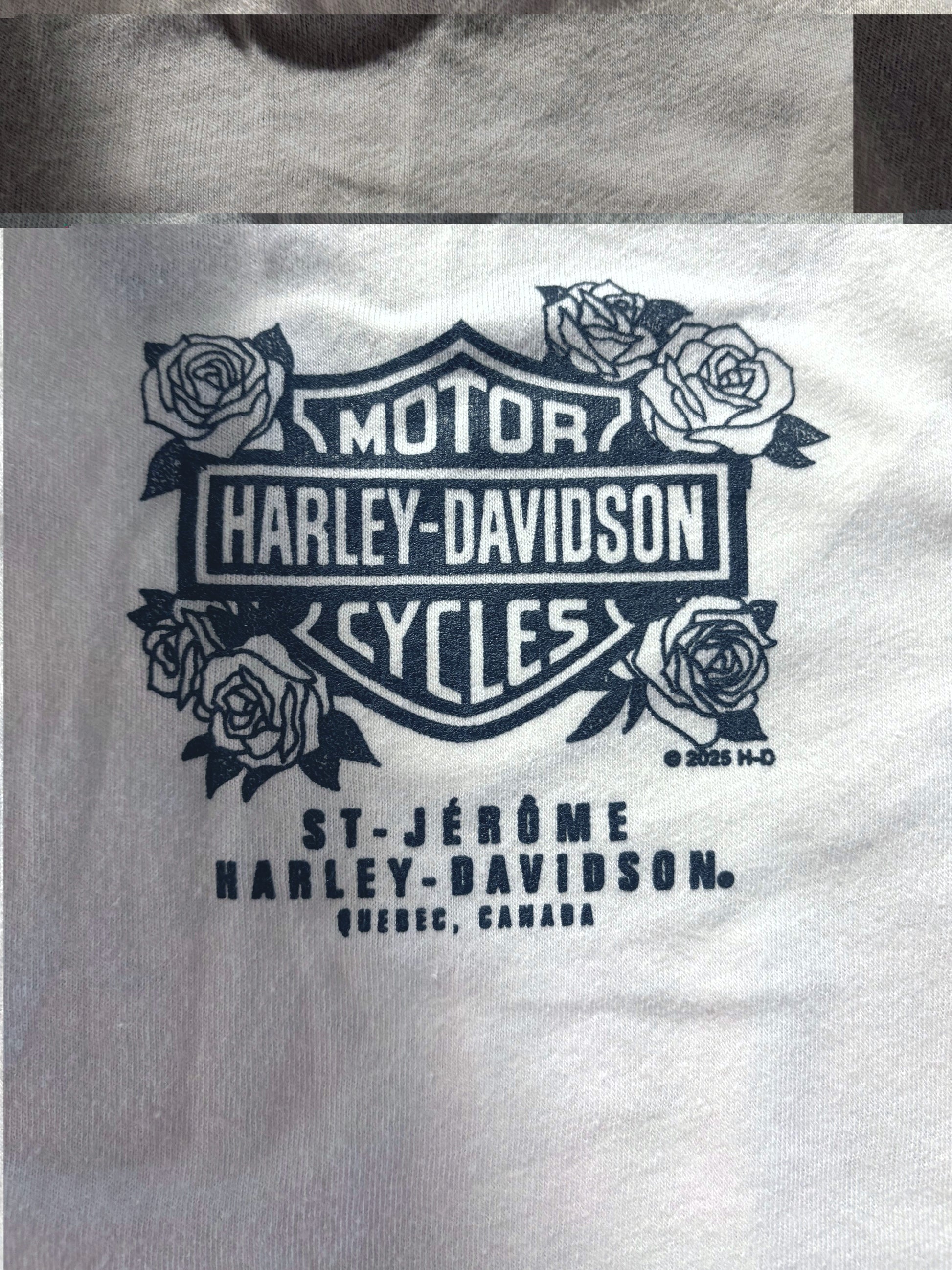 Portez les couleurs de St-Jérôme Harley-Davidson! Toute nouvelle collection de t-shirt, parfaite pour afficher votre appartenance à la famille St-Jérôme Harley-Davidson ou bien pour un souvenir unique de votre visite dans les Laurentides! Les couleurs au dos peuvent varier et s'harmoniser selon la couleur du chandail. T-shirt original Harley-Davidson pour homme au design rouillé 100% coton Couleur : noir Col rond avec imprimé exclusif SJHD au dos (remarque : peut être assorti à la couleur du motif du devant)