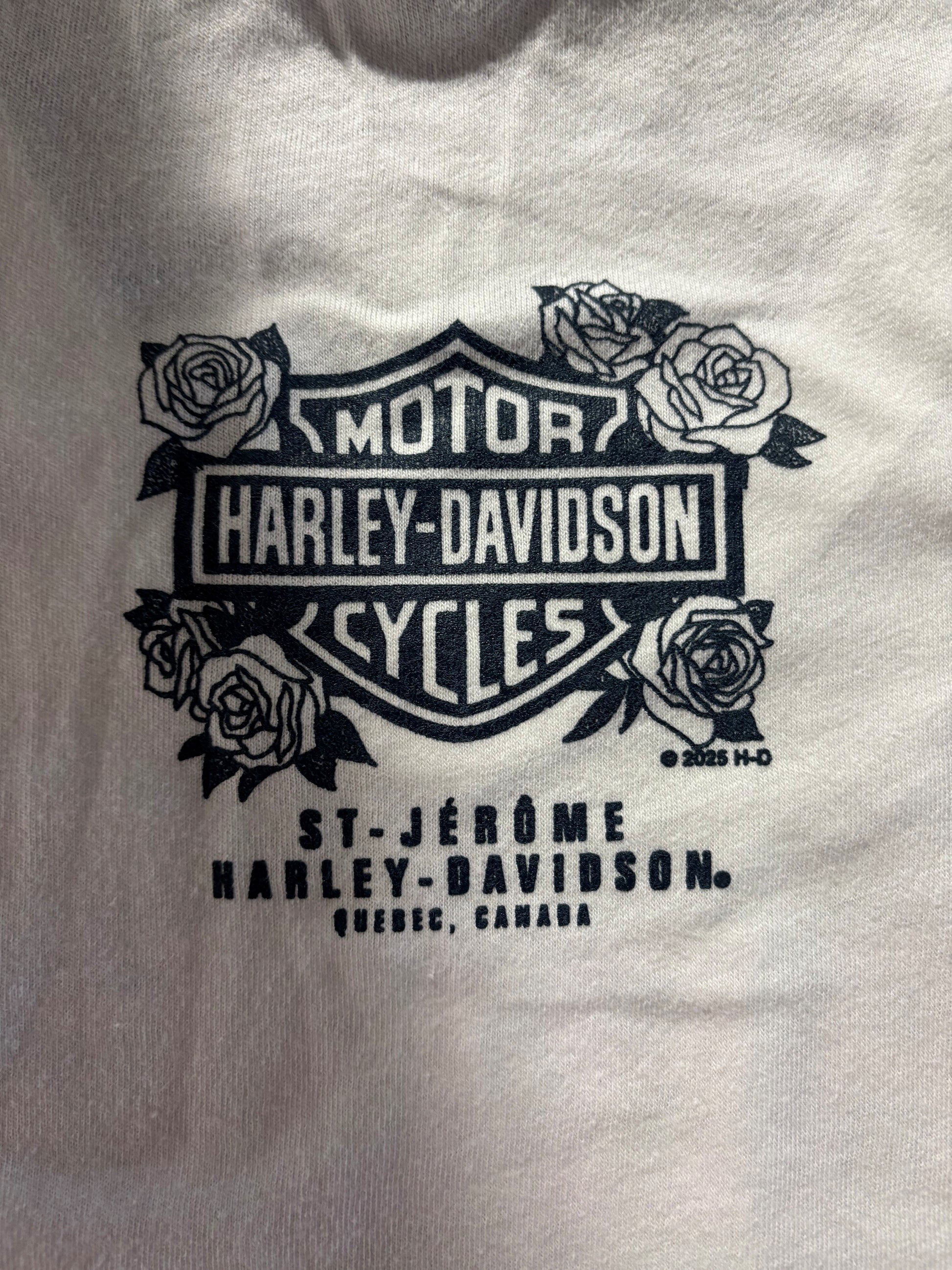 Portez les couleurs de St-Jérôme Harley-Davidson! Toute nouvelle collection de t-shirt, parfaite pour afficher votre appartenance à la famille St-Jérôme Harley-Davidson ou bien pour un souvenir unique de votre visite dans les Laurentides! Les couleurs au dos peuvent varier et s'harmoniser selon la couleur du chandail. T-shirt original Harley-Davidson pour homme au design rouillé 100% coton Couleur : noir Col rond avec imprimé exclusif SJHD au dos (remarque : peut être assorti à la couleur du motif du devant)