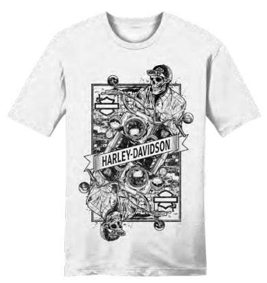 Portez les couleurs de St-Jérôme Harley-Davidson! Toute nouvelle collection de t-shirt, parfaite pour afficher votre appartenance à la famille St-Jérôme Harley-Davidson ou bien pour un souvenir unique de votre visite dans les Laurentides! Les couleurs au dos peuvent varier et s'harmoniser selon la couleur du chandail. T-shirt original Harley-Davidson pour homme au design rouillé 100% coton Couleur : noir Col rond avec imprimé exclusif SJHD au dos (remarque : peut être assorti à la couleur du motif du devant)