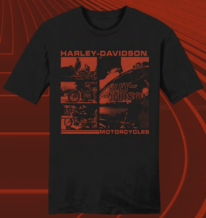Portez les couleurs de St-Jérôme Harley-Davidson! Toute nouvelle collection de t-shirt, parfaite pour afficher votre appartenance à la famille St-Jérôme Harley-Davidson ou bien pour un souvenir unique de votre visite dans les Laurentides! Les couleurs au dos peuvent varier et s'harmoniser selon la couleur du chandail. T-shirt original Harley-Davidson pour homme au design rouillé 100% coton Couleur : noir Col rond avec imprimé exclusif SJHD au dos (remarque : peut être assorti à la couleur du motif du devant)